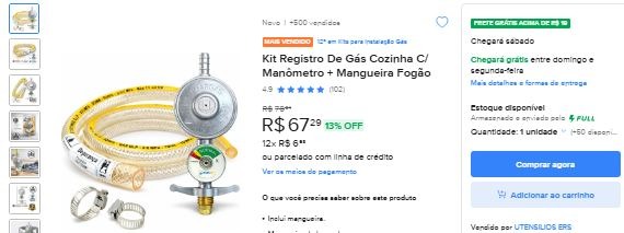 Mangueira de gás dentro da validade
